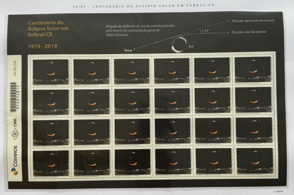 • 2019 - Comemorativo. Cent. do Eclipse Solar em Sobral - CE. Folha c/ 24 selos + vinheta do C3820 (vide foto) - mint.