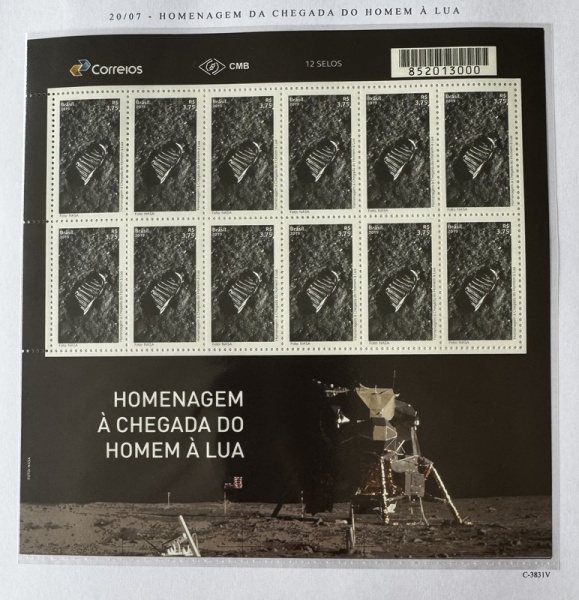 • 2019 - Comemorativo. Homenagem à Chegada do Homem à Lua. Folha c/ 12 selos + vinheta, C3831 (vide foto) - mint.