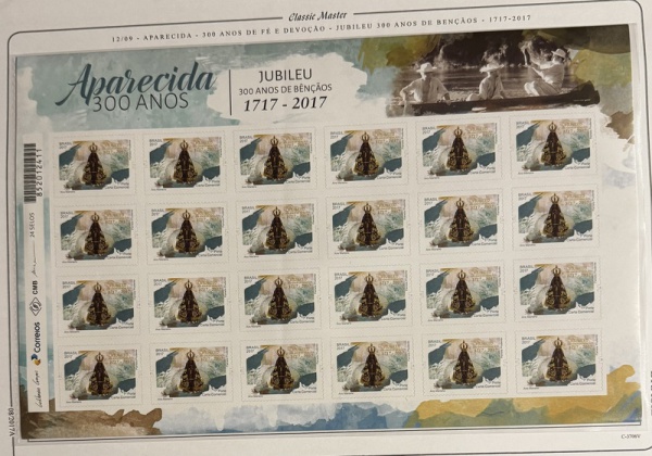 • 2017 - Comemorativo. 300 Anos de Aparecida do Norte. Folha c/ 24 selos do C3706 (vide foto) - mint.