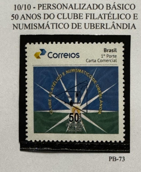 • 2017 - Personalizado Básico. 50 Anos Clube Filatélico de Uberlândia. PB-73 (vide foto), mint.