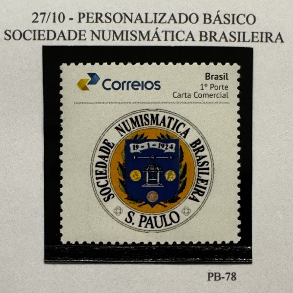 • 2017 - Personalizado Básico. 98 Anos da Sociedade Philatélica Paulista. PB-72 (vide foto), mint.