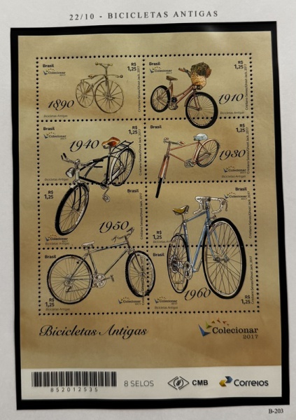 • 2017 - Bloco. Bicletas Antigas. B-203 (vide foto) - mint (28 UF).