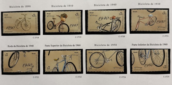 • 2017 - Comemorativo. Bicletas Antigas. Selo B-203, 8 selos, C3718 a C3725 (vide foto) - mint (28 UF).