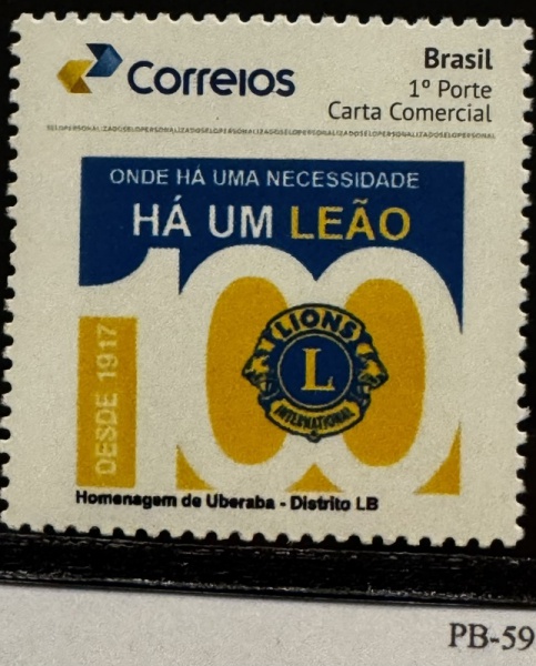• 2017 - Personalizado Básico. 100 Anos do Lions. PB-59 (vide foto), mint.