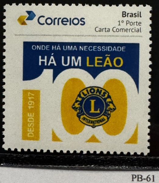 • 2017 - Personalizado Básico. 100 Anos do Lions. PB-61 (vide foto), mint.