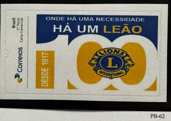 • 2017 - Personalizado Básico. 100 Anos do Lions. PB-62 (vide foto), mint.