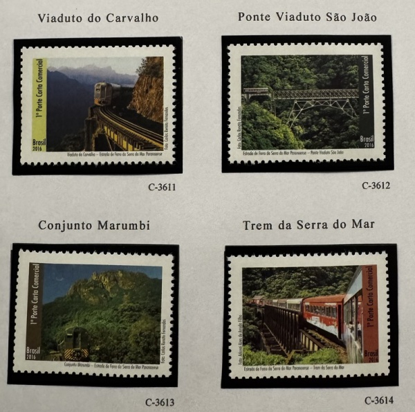 • 2016 - Comemorativo. Estrada de Ferro Serra do Mar Paranaense. 4 selos, C3611 a C3614 (vide foto), mint (20 UF).
