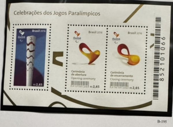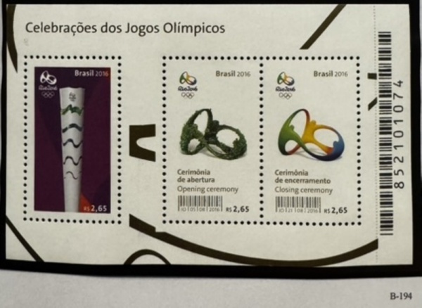 • 2016 - Bloco. Celebrações dos Jogos Rio 2016. B-195 (vide foto) - mint (21 UF).