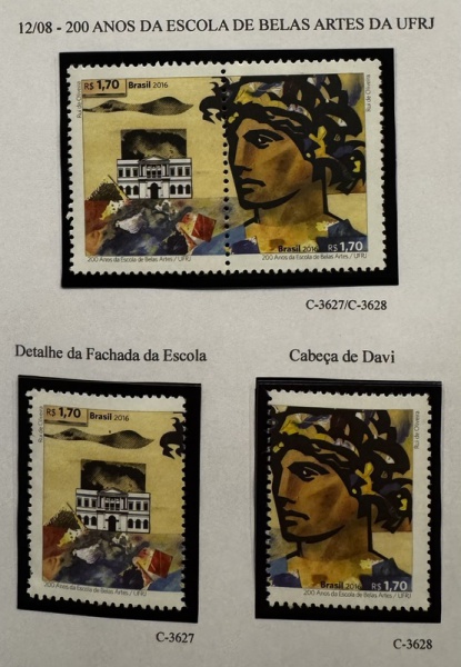 • 2016 - Comemorativo. 200 Anos da Escola de Belas Artes da UFRJ. Selos C3627 e C3628 + Conjunto C3628 CJ (vide foto) - mint (12 UF).