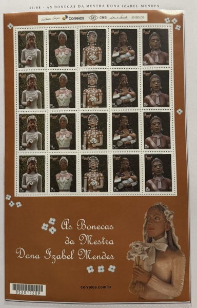 • 2016 - Comemorativo. Bonecas da Mestra D. Izabel. Folha c/ 20 selos C3630 a C3634 + vinheta (vide foto) - mint (100 UF).