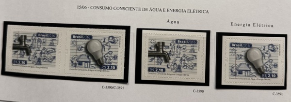 • 2016 - Comemorativo. Consumo Consciente. Selos C3590 e C3591 + Conjunto C3591 CJ (vide foto) - mint (19 UF).