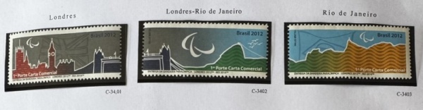• 2015 - Comemorativo. Entrega da Bandeira Paralímpica. C3401 a C3403 (vide foto), mint (30 UF).