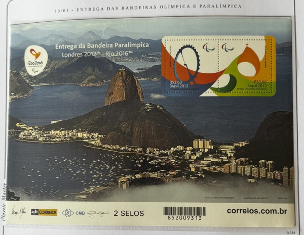 • 2015 - Bloco. Entrega da Bandeira Paralímpica. B-184 (vide foto) - mint (50 UF).