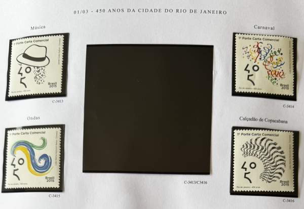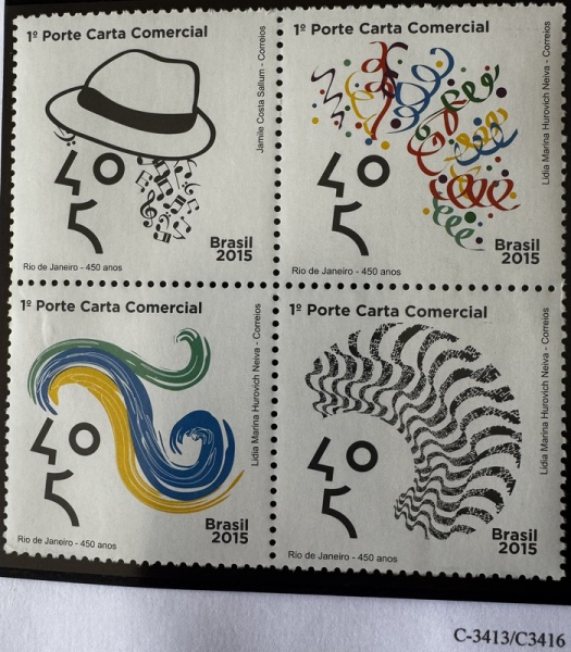 • 2015 - Comemorativo. 450 Anos Rio de Janeiro. 4 selos, C3413 a C3416 (vide foto), mint (16 UF).