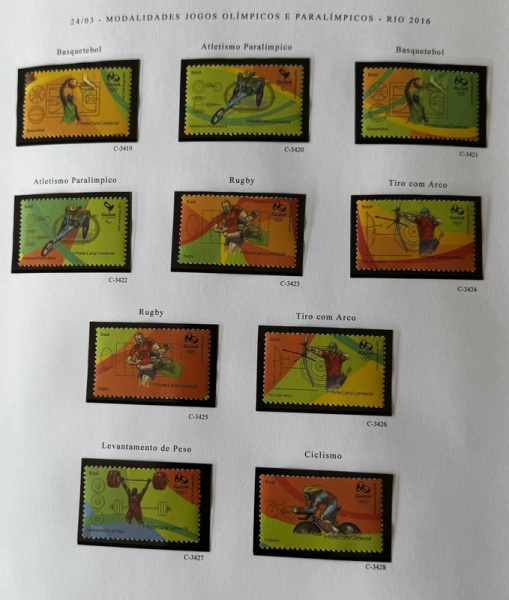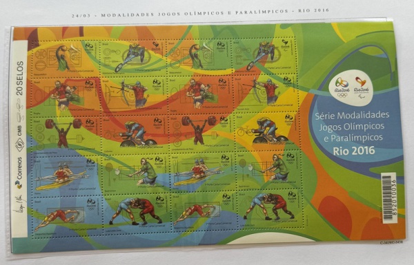 • 2015 - Comemorativo. Modalidades Olímpicas e Paralímpicas I. Folha: C3438 CJ, com selos C3419 a C3438 + vinheta (vide foto), mint (100 UF).