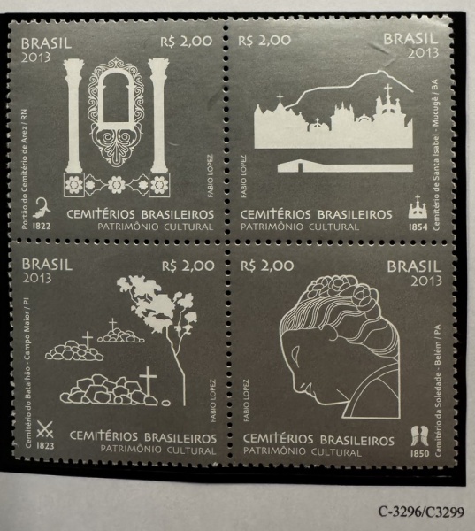 • 2013 - Comemorativo. Cemitérios Brasileiros. C3299 CJ (vide foto), mint (20 UF).