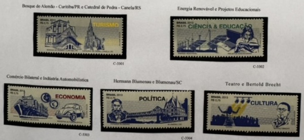 • 2013 - Comemorativo. Brasil-Alemanha. Selos B-175, C3301 a C3305 (vide foto) - mint (30 UF).