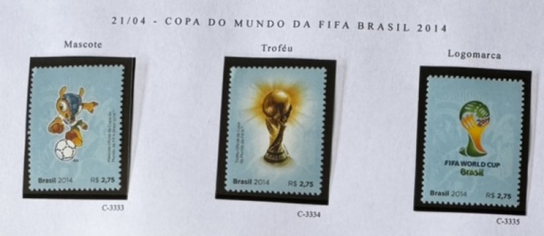 • 2014 - Comemorativo. Copa da Fifa 2014. Selos do Bloco B-179, C3333 a C3335 (vide foto), mint (21 UF).
