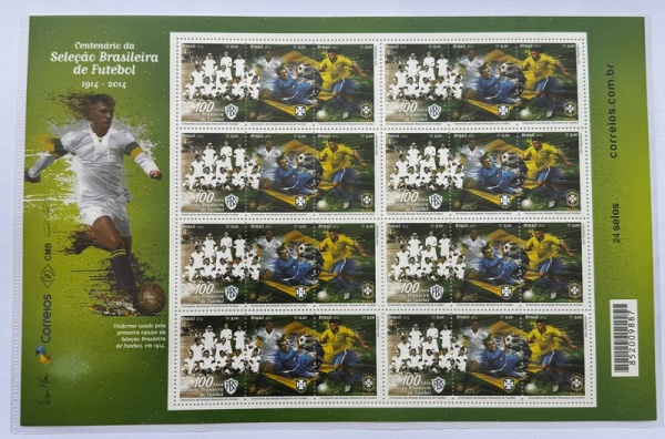 • 2014 - Comemorativo. Cent. da Seleção Brasileira. Folha, 24 selos, C3370 a C3372 (vide foto), mint (120 UF).