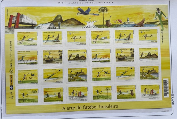• 2014 - Comemorativo. Arte do Futebol Brasileiro. Folha, 24 selos, C3348 a C3359 (2x) - (vide foto), mint (120 UF).
