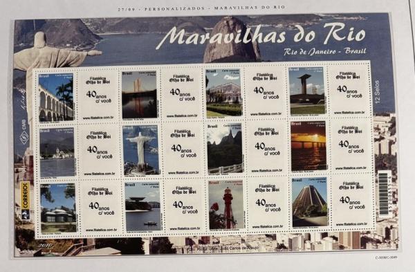 • 2010 - Comemorativo. Selos Personalizados. Maravilhas do Rio, FOLHA, 12 selos + 12 vinhetas, Conjunto C3049 CJ (vide foto), mint (360 UF).