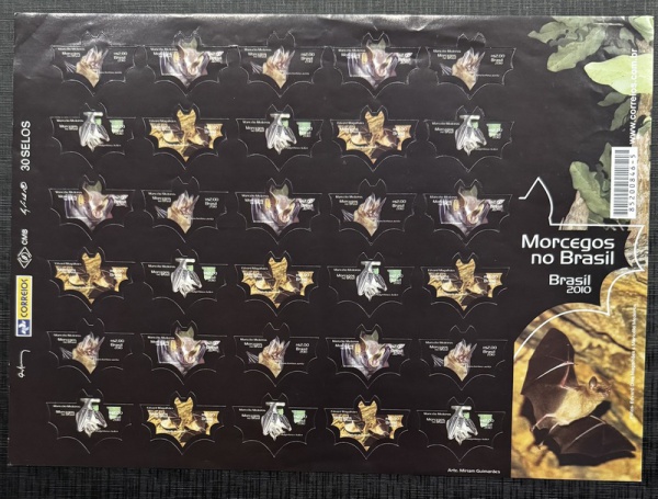 • 2010 - Comemorativo. Morcegos, FOLHA, selos + vinheta, 3062 CJ1 (vide foto), mint (1200 UF).