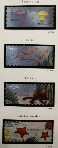• 2011 - Comemorativo. Fauna Marinha, selo do B-162, C3089 a C3092 (vide foto) - mint (32 UF).