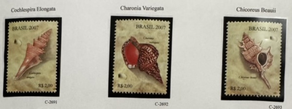 • 2007 - Comemorativo. Conchas Marítimas, selos do B-145, C2691 a C2693 (vide foto) - mint (18 UF).