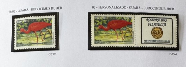 • 2004 - Comemorativo. 2 selos, Selo Personalizado, Vinheta e Guará, C2564 + C2563 (vide foto), mint (22,8 UF).