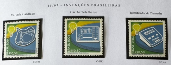 • 2004 - Comemorativo, 3 selos, Série `Invenções Brasileiras`, C2581 a C2583 (vide foto), mint (6 UF).