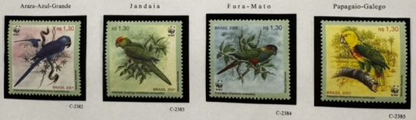 • 2001 - Aves Brasileiras, Selos do B-119, C2382 a C2385 (vide foto) - mint (30 UF).