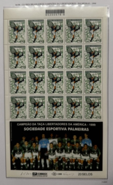 • 2001 - Comemorativo. Campeções da Libertadores, Palmeiras, Folha, C2404 CJ, com 20 selos + vinheta (vide foto), mint (200 UF).