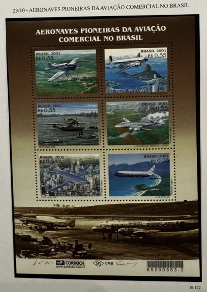 • 2001 - Bloco. Aeronaves Pioneiras, B-122 (vide foto) - mint (27 UF).