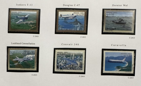 • 2001 - Aeronaves Pioneiras, Selos do B-122, C2410 a C2415 (vide foto) - mint (27 UF).