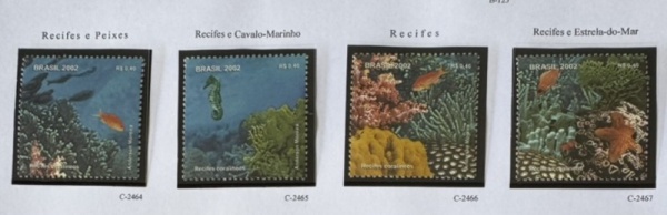 • 2002 - Recifes Coralíneos, Selos do B-125, C2464 a C2467 (vide foto) - mint (12 UF).