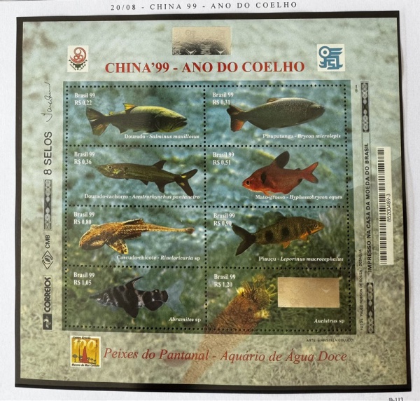 • 1999 - Bloco B-113 - Peixes Pantanal (vide foto) - mint (28 UF).