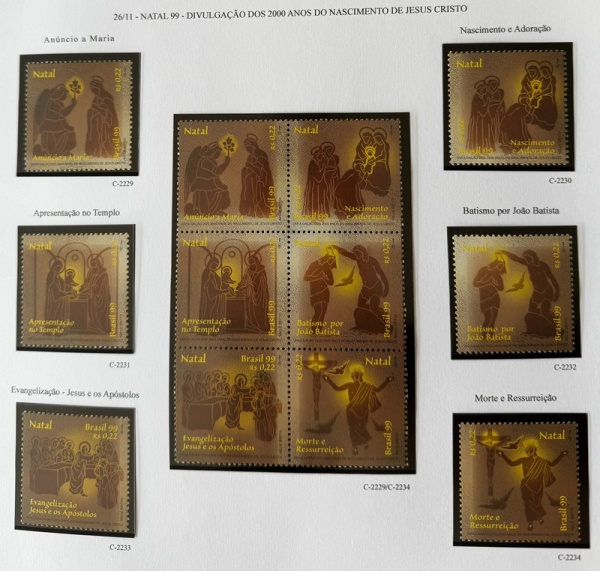 • 1999 - Comemorativo, Natal 99, C2229 a C2234 + Conjunto C2234 CJ (vide foto), mint (24 UF).