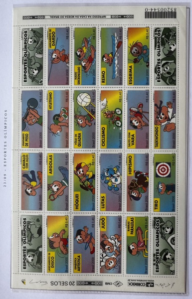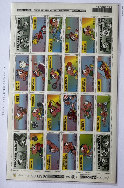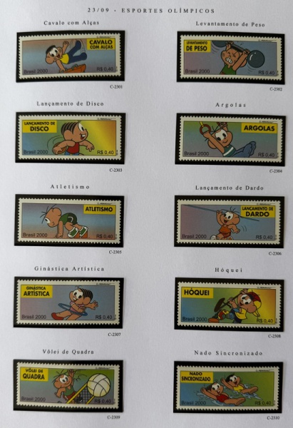 • 2000 - Comemorativo. Esportes Olímpicos Turma da Mônica. 20 selos, Selos C2301 a C2320 (vide foto), mint (120 UF).