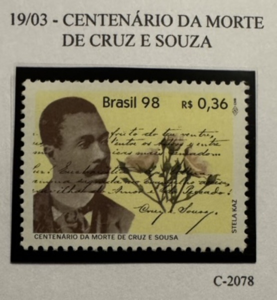• 1998 - Comemorativo - Poeta Cruz de Souza - selo C-2078 (vide foto) - mint (3 UF).