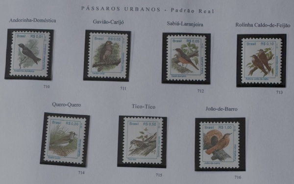 • 1994 - Regular - Série Passáros Urbanos - nº 710 a 716 - mint (7,7 UF).