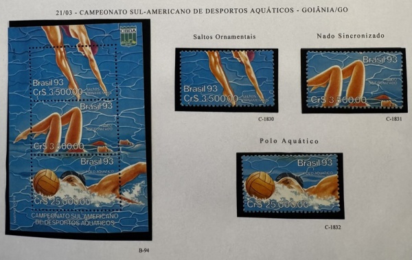 • Bloco e Comemorativos do bloco - 1993 - Esportes Aquáticos - B-94 + C-1830 a C-1832, mint (12 UF).