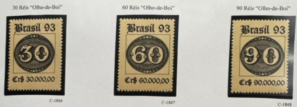 • Comemorativo - 1993 - Brasiliana 93 - 3 Selos do Bloco 95, C-1846 a C-1848 - mint (45 UF).
