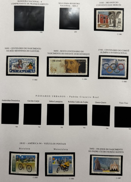 • Comemorativo - 1994 - 7 selos, entre o C-1881 e C-1887 (vide foto) - mint (17 UF)