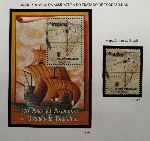 • Bloco e Comemorativos do bloco - 1994 - Tratado Tordesilhas - B-97 + selo C-1902 - mint (19 UF).