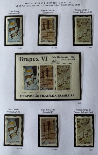 • Bloco e Comemorativos do bloco - 1985 - Brapex VI - B-69 + 6 selos: C-1455 a C-1460 - mint (21,4 UF).