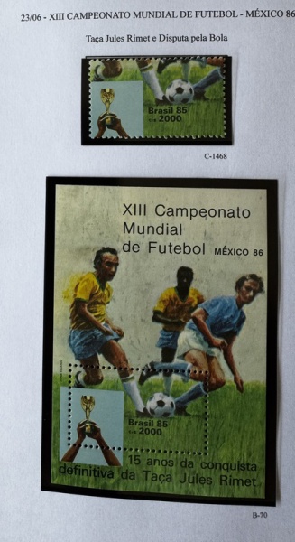 • Bloco e Comemorativos do bloco - 1985 - Taça Jules Rimet - B-70 + C-1468 - mint (29 UF).