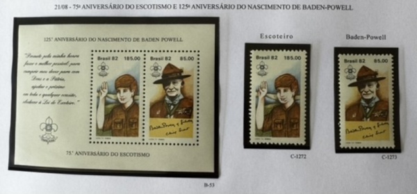 • Bloco e Comemorativos do bloco - 1982 - Baden-Powell - B-53 + C-1273 e C-1274 - mint (39 UF).