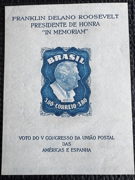• Bloco - `Roosevelt` - 1949 - B-12 B (Fil. no Selo) - novo (240 UF).