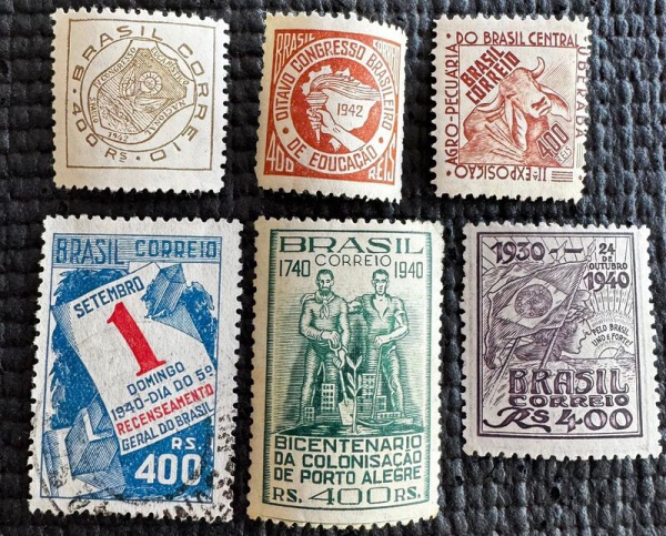 • Comemorativo - 6 selos - Década de 1940 - 5 novos e 1 usado.