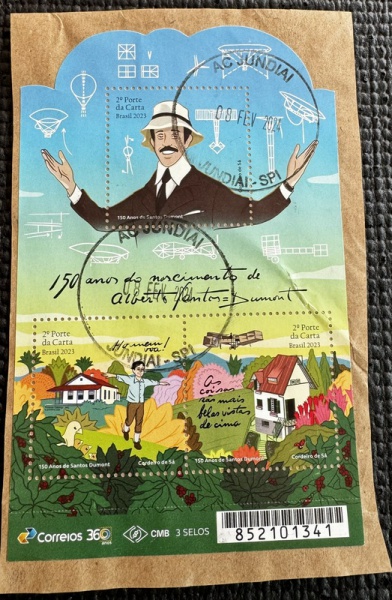 • 2023 - Bloco B-233, 150 Anos Santos Dumont, circulado em fragmanto.